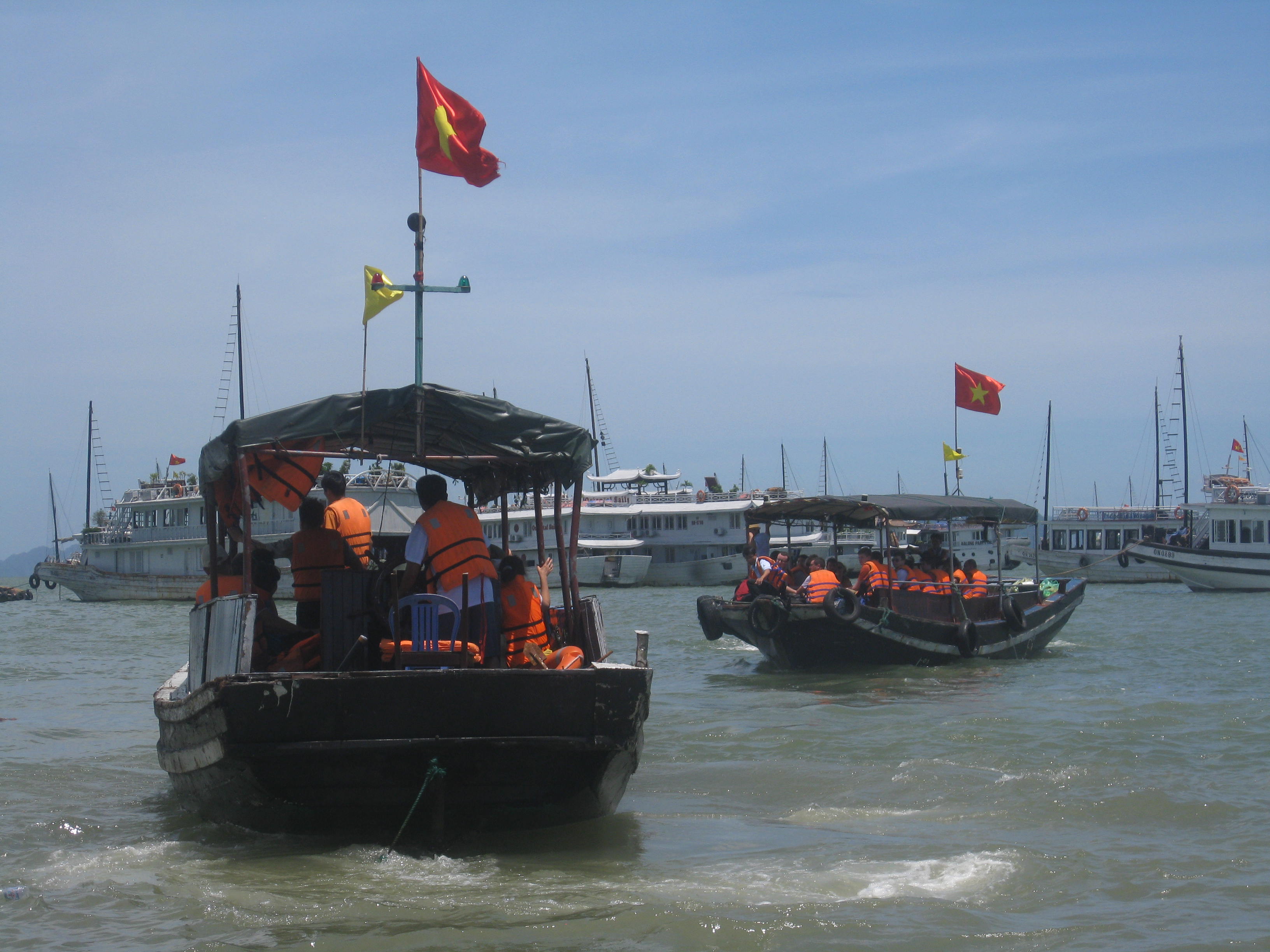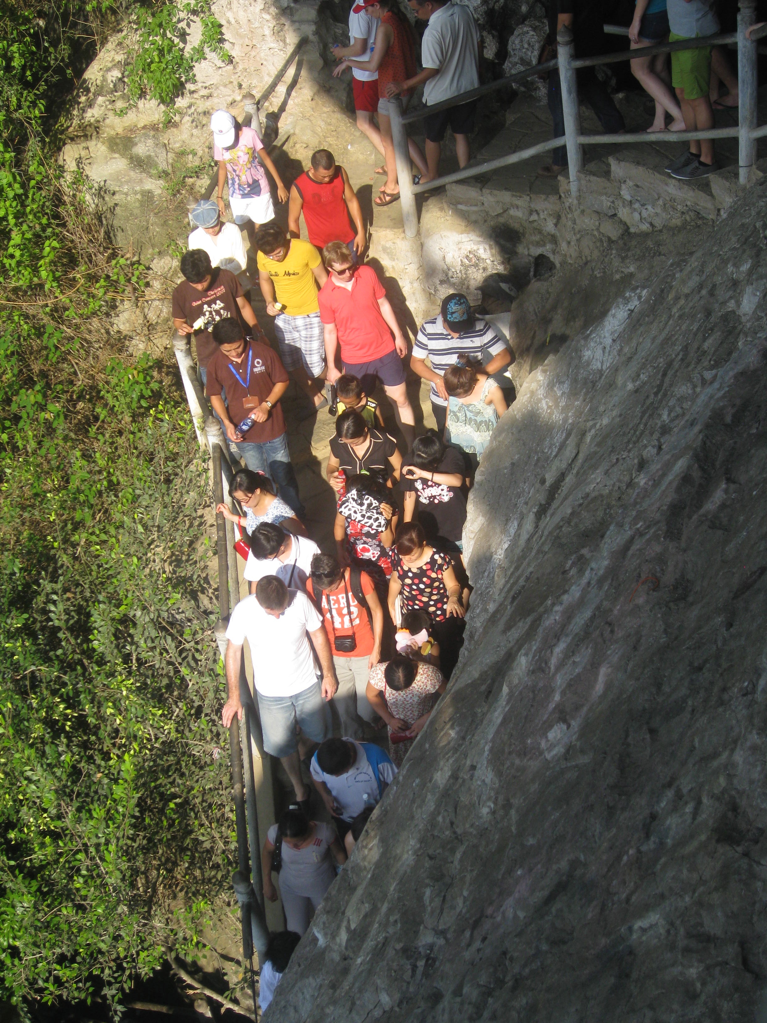 Can I just say “Whoa”?! I was honestly expecting a little known, preserved nature area (a la Milford & Doubtful Sound), instead we had arrived at an Indochina Disneyland. Our guide even had a flag for us to follow him. I kid you not.