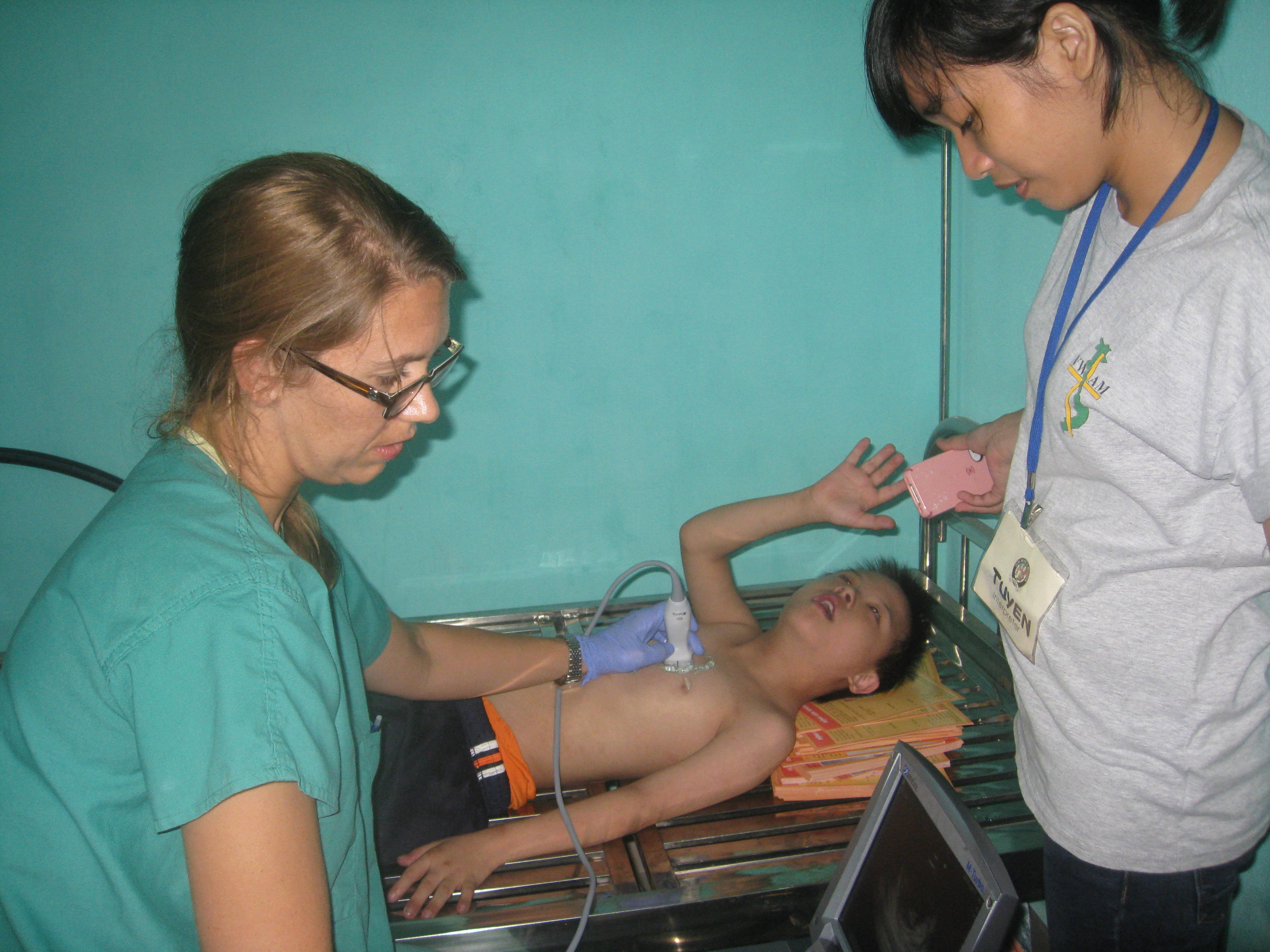 The last of clinic was both a very (medically) interesting and rewarding day. One of our colleagues saw a patient with leprosy, and we had a large group of Down’s syndrome patients. My last patient of the day was a young boy with Down’s syndrome who was not feeding well or growing as well as his peers. Tuyen (my translator) managed to distract him while playing music for him on my IPhone and showing him pictures. Talk about a team effort, but worth it. He seemed to like Van Morrison the best, and I was able to look at his heart with the ultrasound machine I have been lugging about. He appeared to have a complete AV canal defect (heart malformation) and we were able to refer him to the hospital for surgical repair.