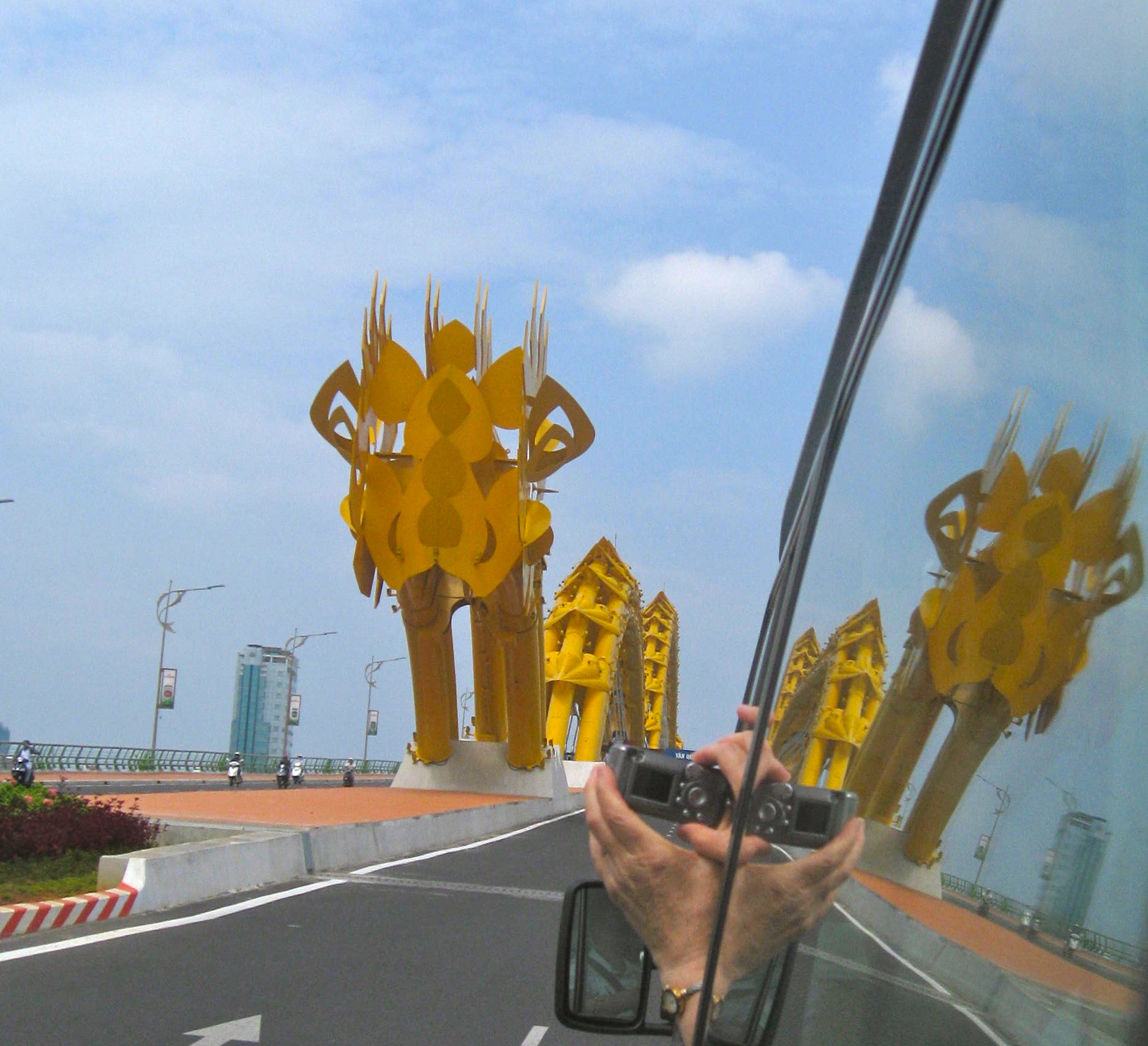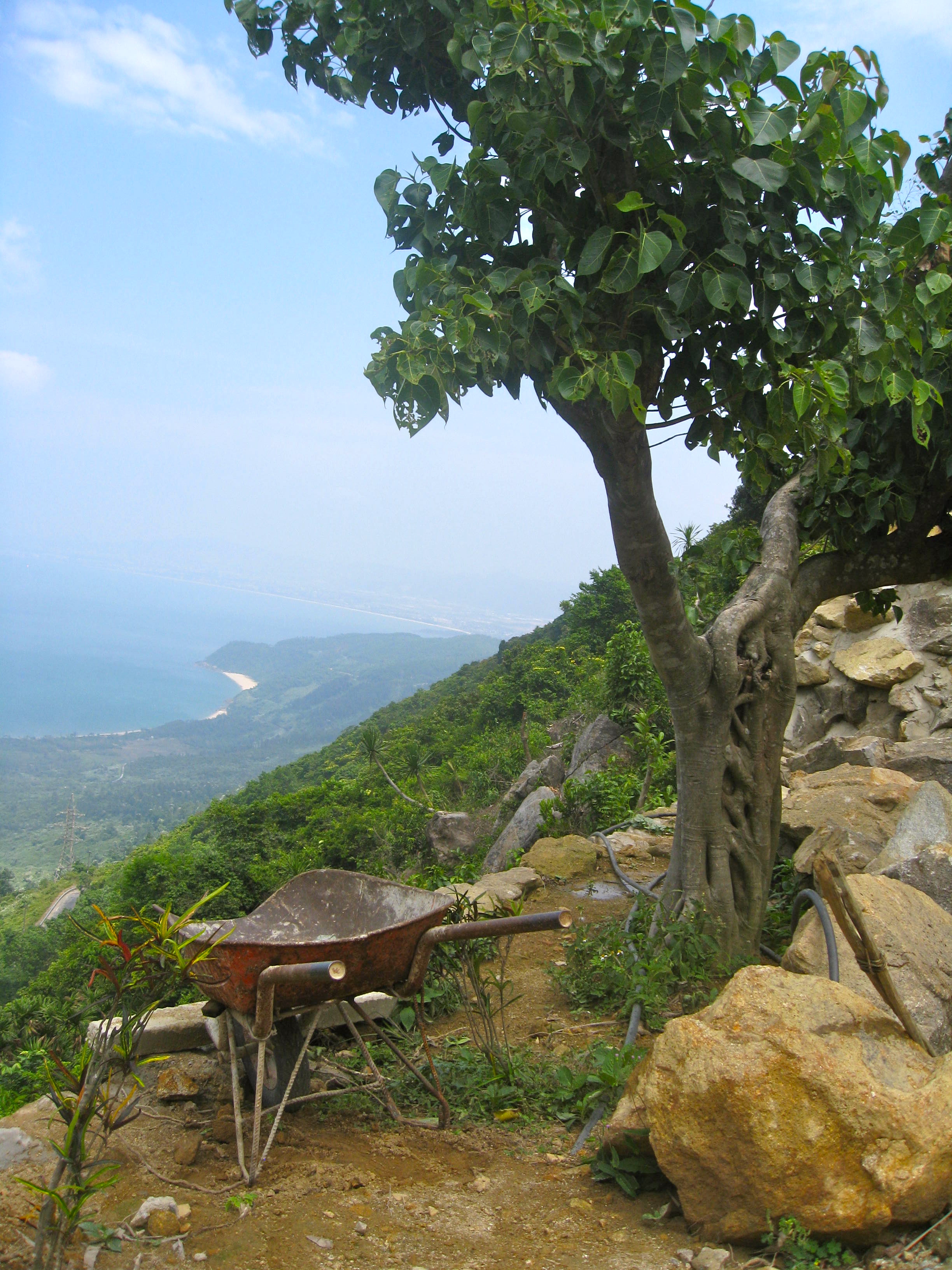 On leaving Hue to head to Da Nang, we decided to to the longer, more scenic route known as the Hai Van Pass. This is also referred to as the Ocean Cloud Pass that transverses the Annamite Mtn Range as it hugs the South China Sea. The BBC’s Jeremy Clarkson also referred to this as “-one of the best coast roads in the world.” (Thank you Wikipedia). It separates North and South Vietnam, and historically has been a strategic road. The road itself climbs high into the mountains with views overlooking the sea. You go around numerous, very sharp, twists and turns to get what is a most spectacular view. What is NOT written is the first hand account from the Vets of traveling this road at night during the war as it was the only supply route.