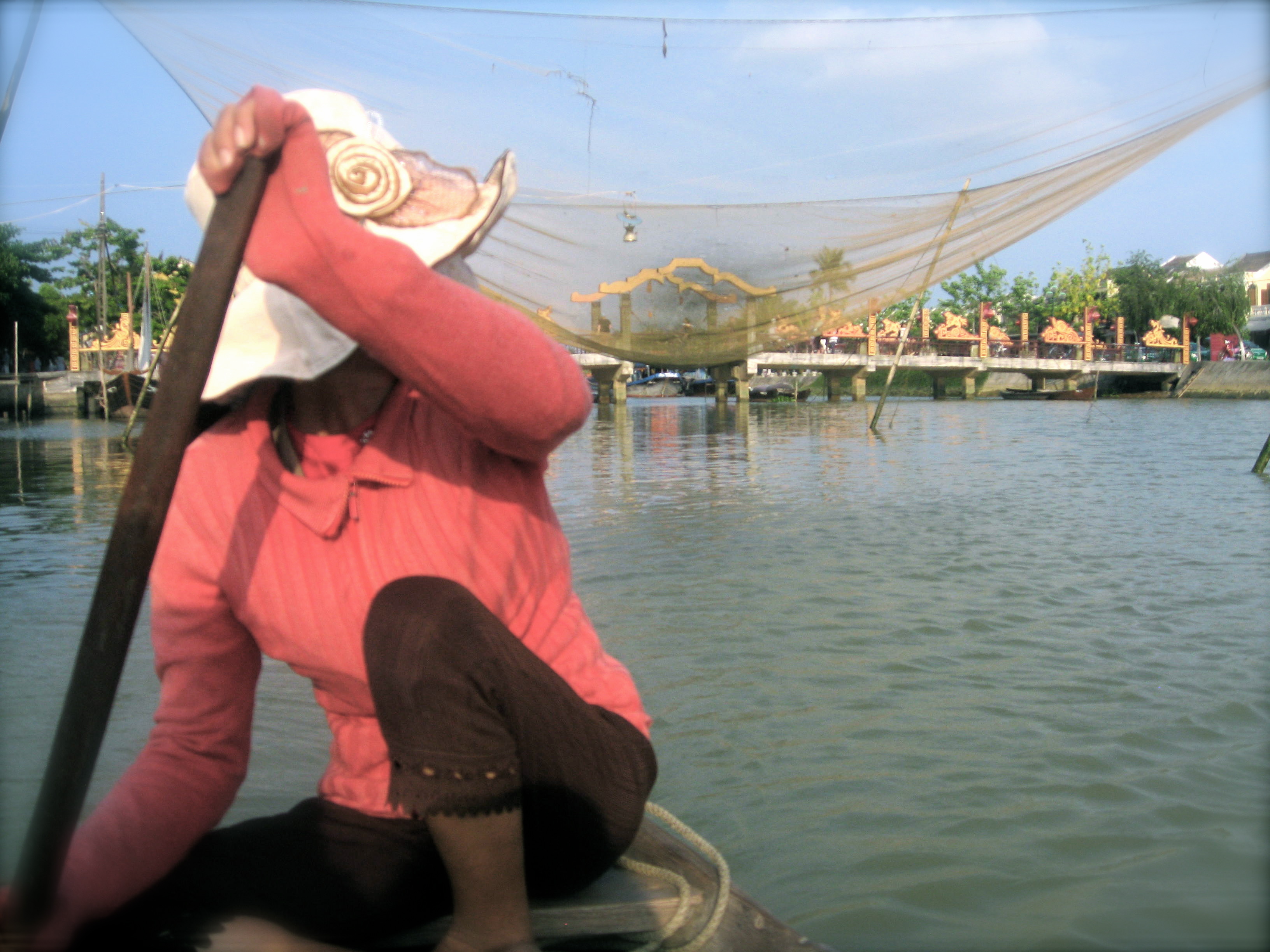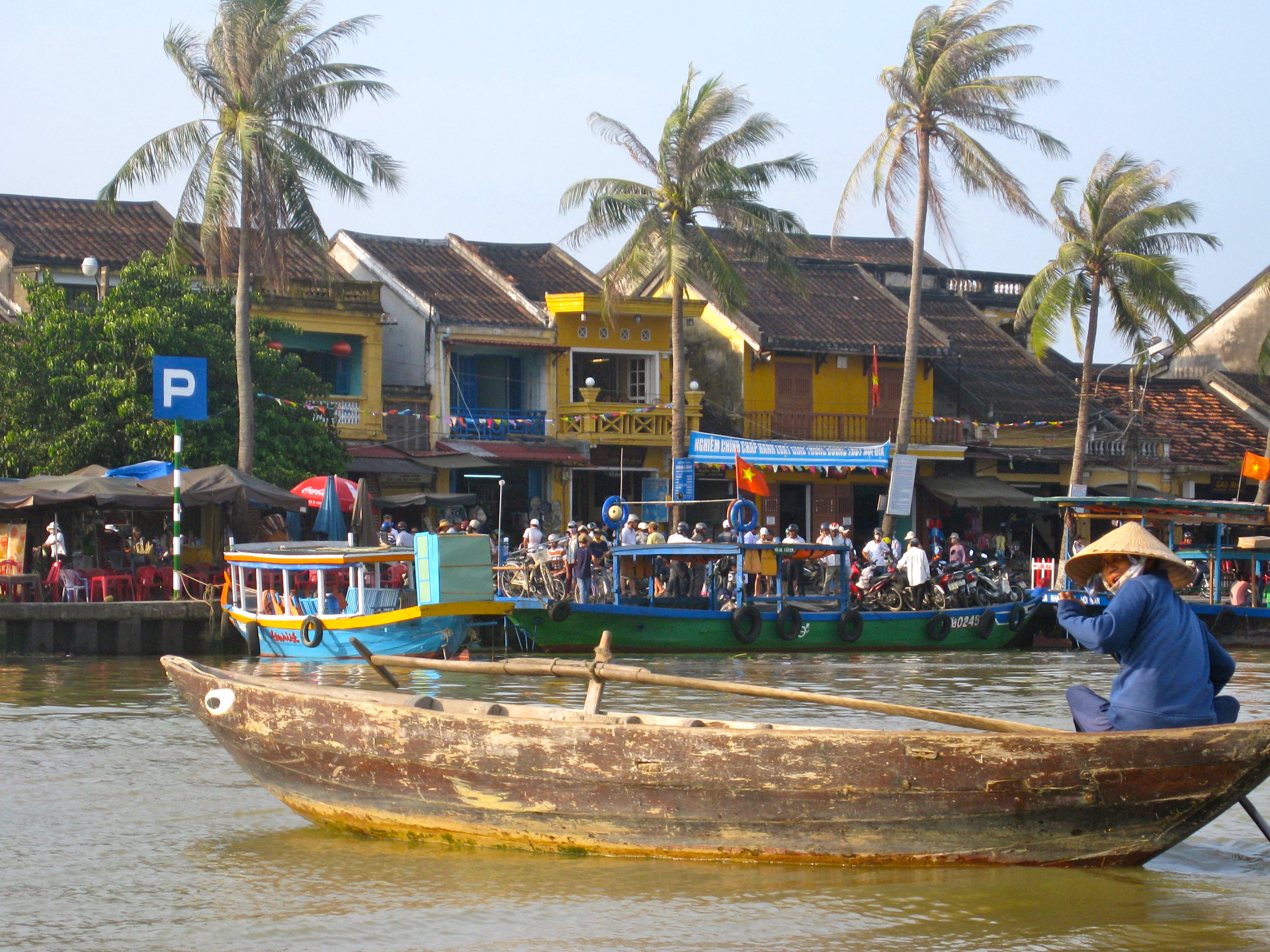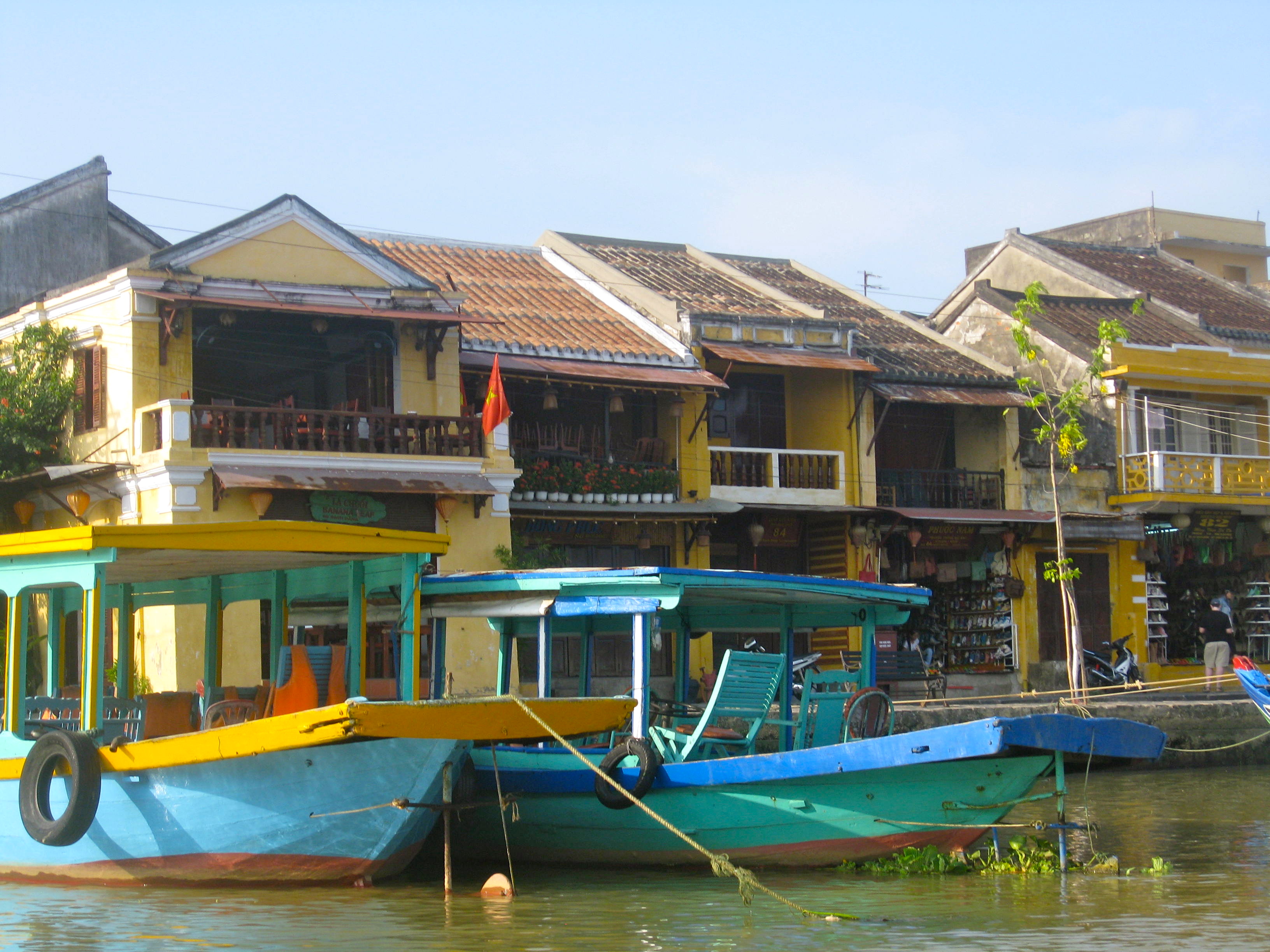 We arrived in town and just decided to spend the first part of the afternoon walking around. The streets were lined with many shops offering gifts, silks, dresses, and art as well as cafe’s. We thought “this is cute” until we turned a corner and stumbled upon the river, and discovered why people rave about this city. Think: Venice meets Vietnam. We decided to hop in a flat river boat and see the city from the river: