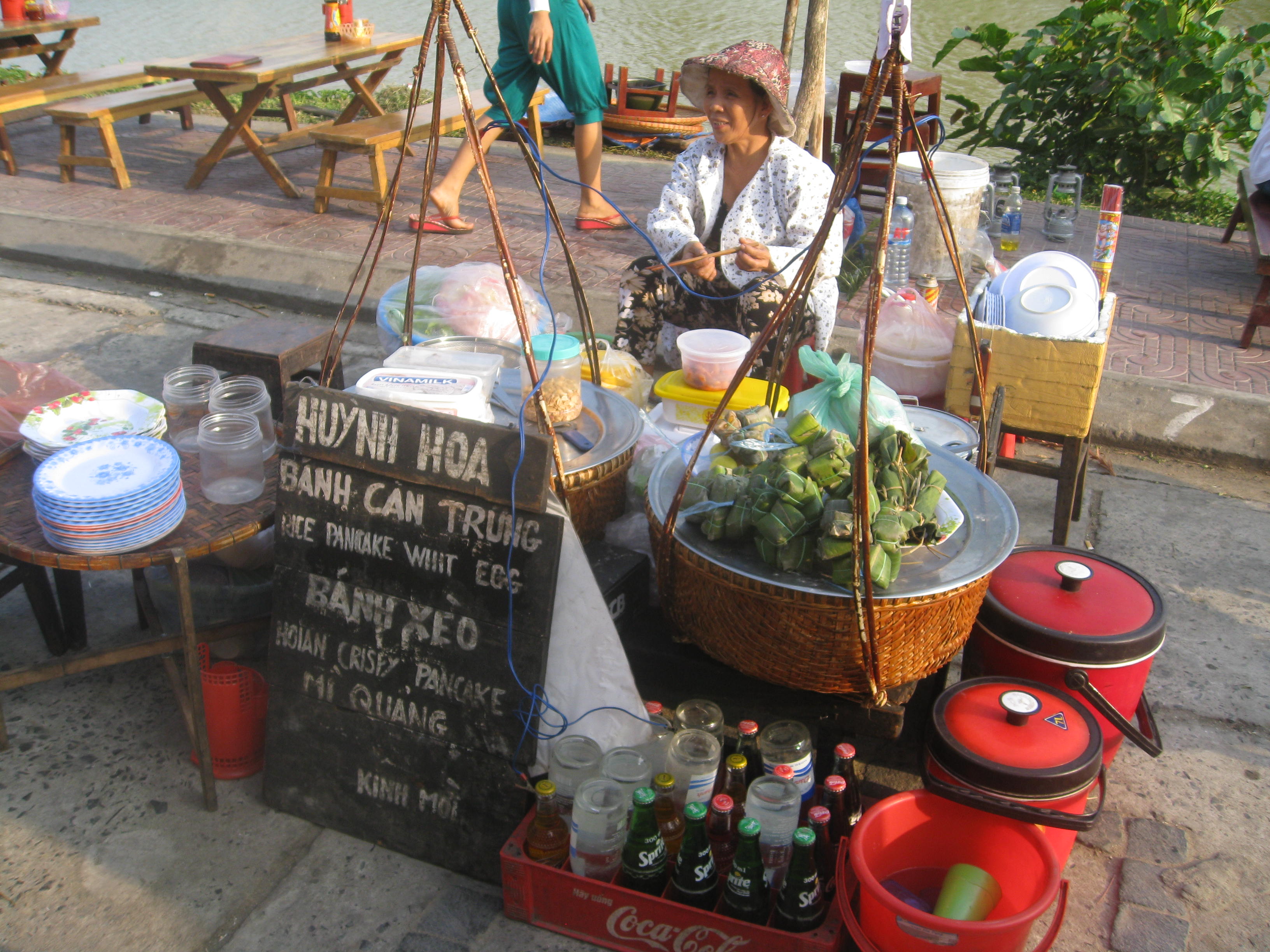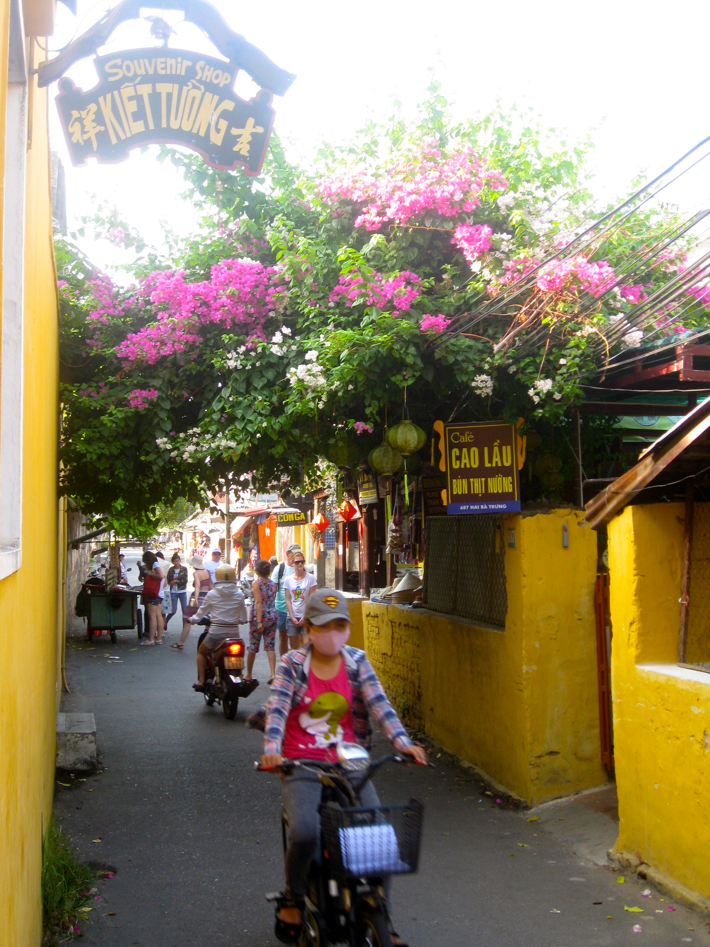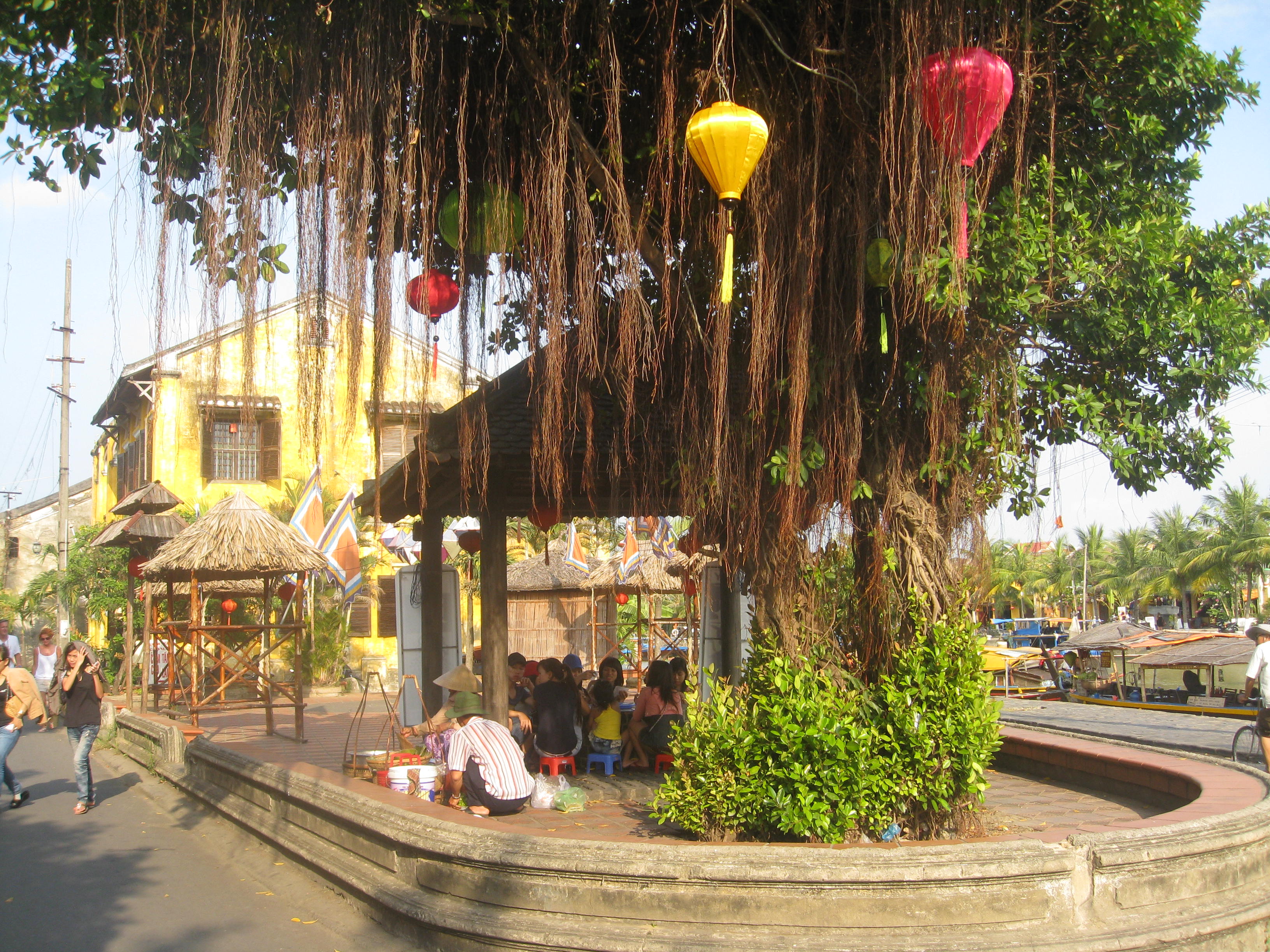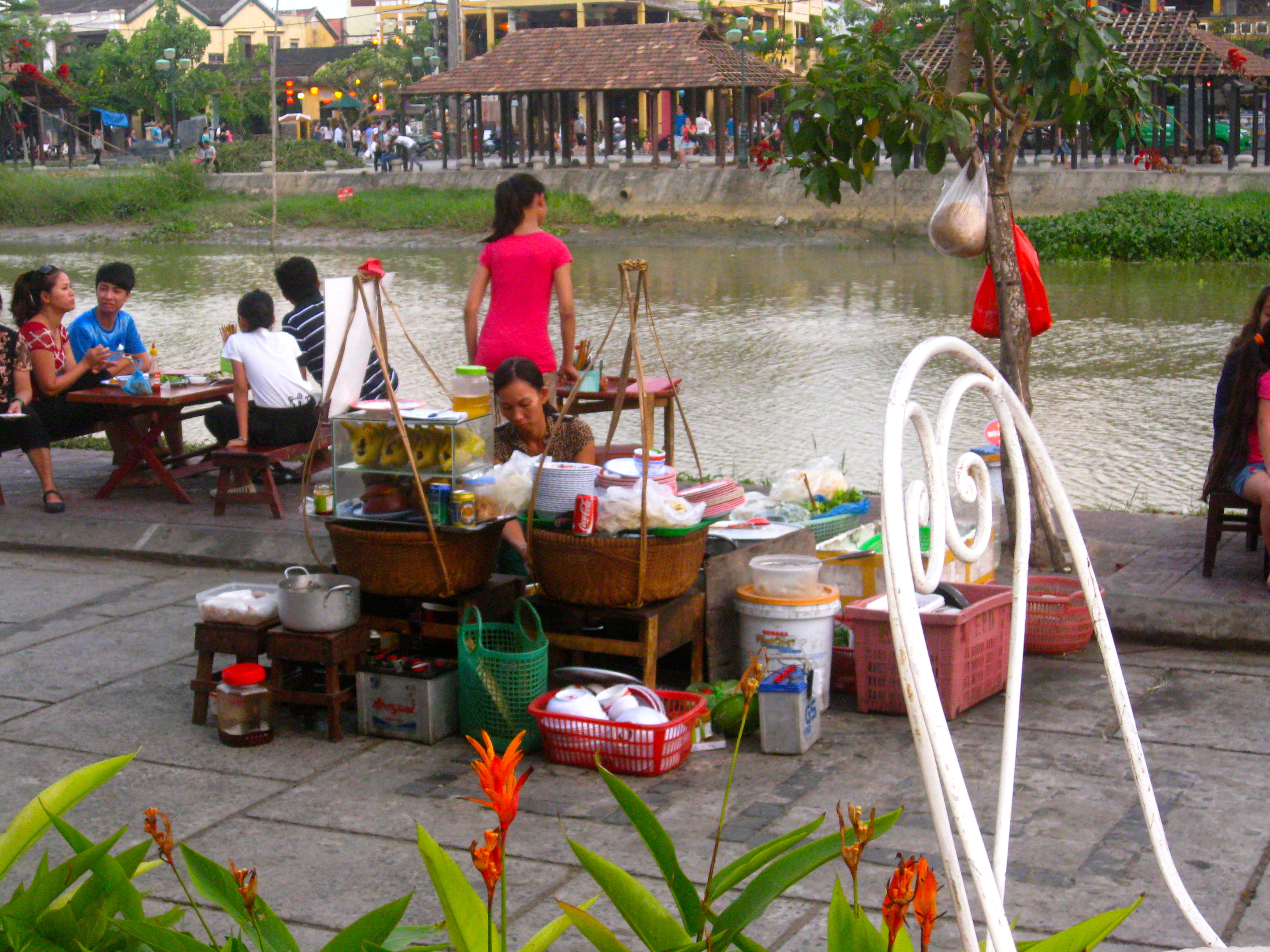 We arrived in town and just decided to spend the first part of the afternoon walking around. The streets were lined with many shops offering gifts, silks, dresses, and art as well as cafe’s. We thought “this is cute” until we turned a corner and stumbled upon the river, and discovered why people rave about this city. Think: Venice meets Vietnam. We decided to hop in a flat river boat and see the city from the river: